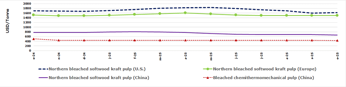 Northern bleached softwood kraft pulp (U.S.) | 1,620 | 1,600 | 1,640 | 1,728 |