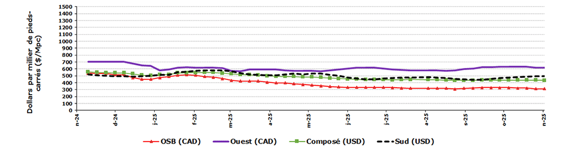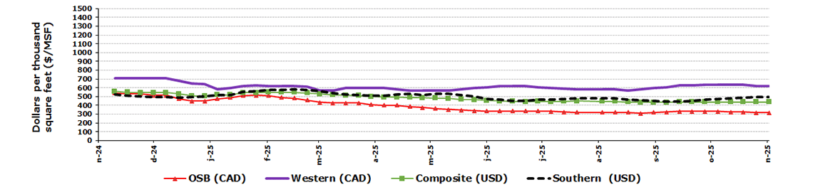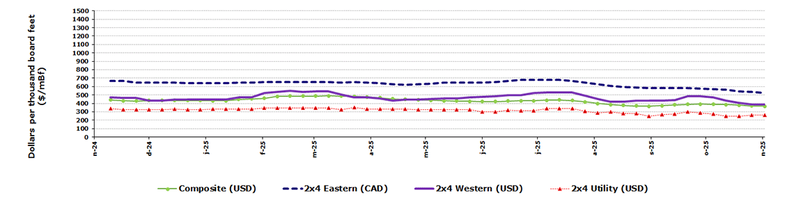 Dollars per thousand board feet | November 28, 2025 | November 21, 2025 | 4-week average | 52-weeks average |