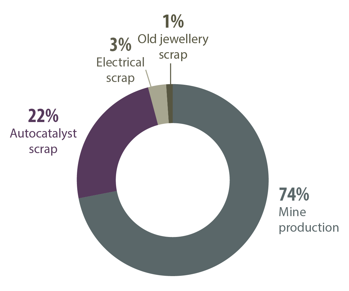 - World supply of platinum group metals, by source, 2024