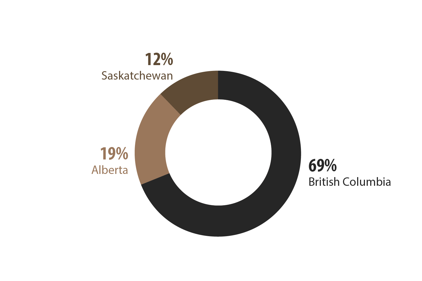 - British Columbia (69%) accounts for most of the coal tonnage mined in Canada, followed by Alberta (19%) and Saskatchewan (11%).