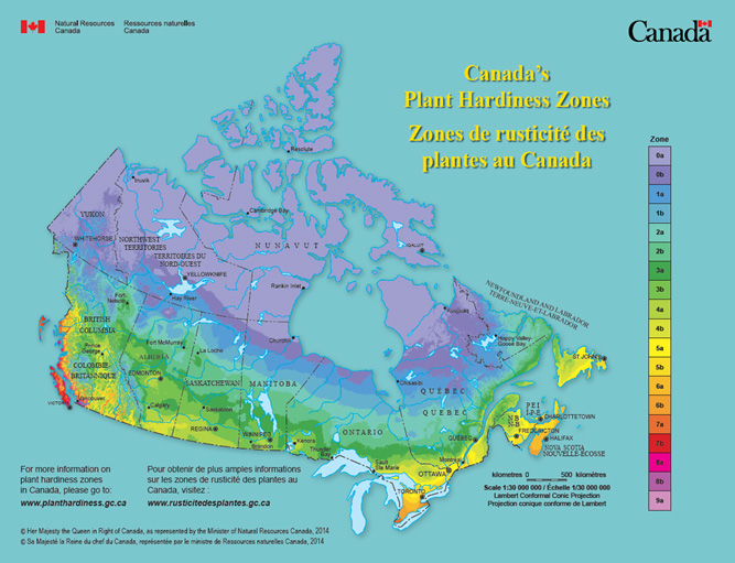 An updated version of the map of Plant Hardiness Zones for Canada has recently been released.