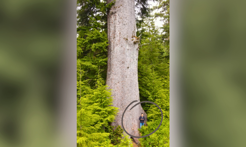 On a site visit to the forests near Port Hardy for a project with the Indigenous Forestry Initiative program, we were guided to this awe-inspiring spruce — an ancient survivor standing strong through decades of windstorm, insect outbreaks and logging. It is a living testament to resilience and history. — Chengdong Fang, forestry development officer
