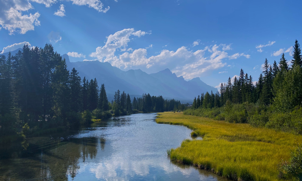 A view of Policeman Creek from its boardwalk trail, named after the North-West Mounted Police post once located along the shore, as it snakes through downtown Canmore, Alberta. Mt. Rundle can be seen in the distance. I captured this photo during a brief and incredibly scenic stop on our crew’s journey from the Pacific Forestry Centre on Vancouver Island to northern Saskatchewan, where we were heading out in the field to collect forest soil samples in a series of jack pine–dominated stands. — Jessica Walker, scientific support technician