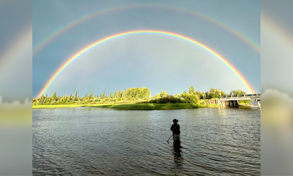 Our team was sent up to Conklin, Alberta, in the summer of 2024 to collect pitfall traps to study arthropod biodiversity along seismic line complexes throughout the boreal forest. The July heat presented quite a few challenges, including working on unshaded peatlands in +35°C conditions. But the vision of beautiful Christina Lake kept us going, slogging through the tough terrain. One evening our efforts were greatly rewarded as we were greeted by the most intense double rainbow ever, lurking in the evening dusk. The skies brightened up, despite the cloudy overcast. It turned into one of the most magical experiences. — Norbert Nguyen, laboratory technician and Philip Hoffman, insect biodiversity technician