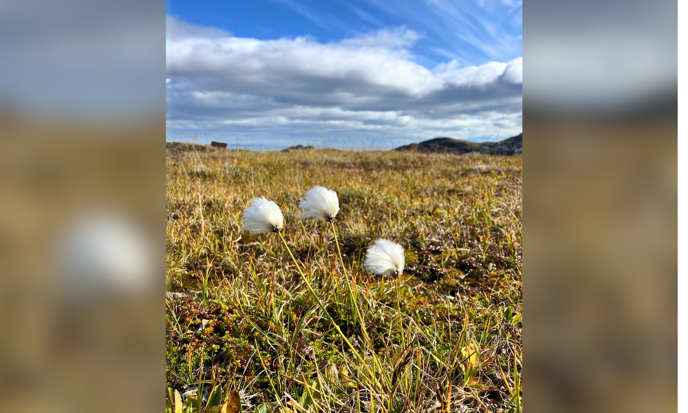 Come fall in Nunavut, the landscape transforms with the abundance of cottongrass, known to the Inuit as Arctic cotton (kanguuyat). Its distinctive small, silky-white flower heads are scattered across the damp parts of the city and throughout the tundra, as seen here in Qaummaarviit Territorial Park, near Iqaluit. This flower was easily my favourite out in nature. I especially loved watching people gather them to create beautiful bouquets that brightened up our homes. While undoubtedly gorgeous, Arctic cotton is also incredibly versatile and remains an important resource for the Inuit communities. — Marie-Krystel Gauthier, molecular biologist