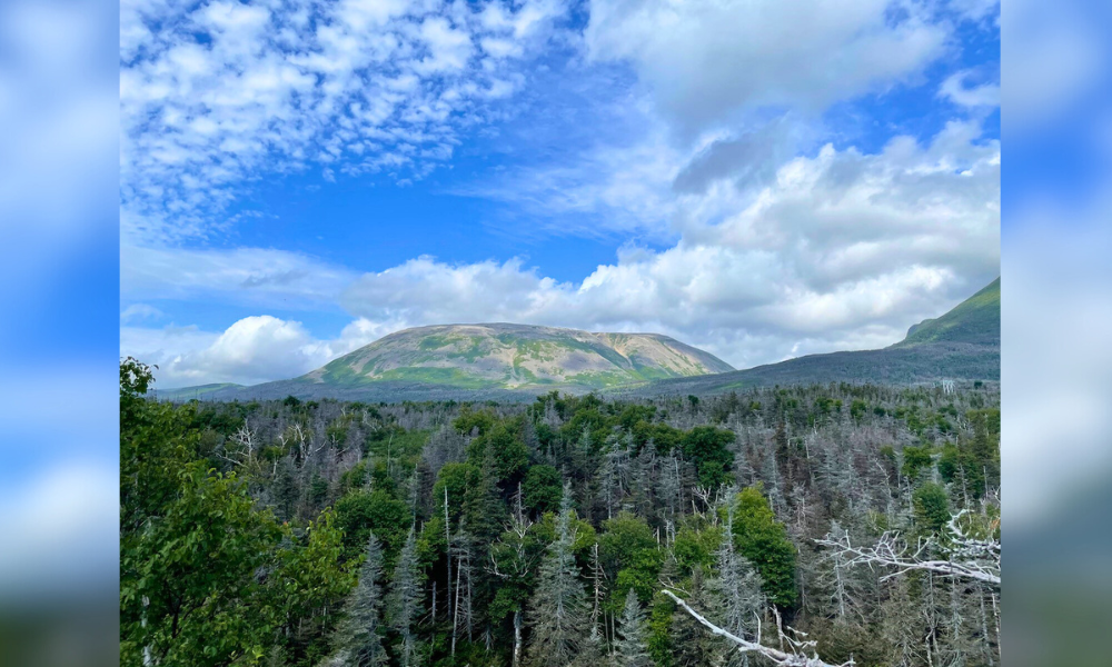 I took this photo about two kilometres along the Gros Morne trail, in Gros Morne National Park, N.L. In the foreground you can see the birches (Betula papyrifera) are all foliated — their branches covered in green leaves — while most of the balsam fir (Abies balsamea) trees are dead or dying following several years of defoliation by the eastern spruce budworm (Choristoneura fumiferana). Balsam fir mortality typically occurs after about three to five years of heavy defoliation. Gros Morne is the second-highest point in the island of Newfoundland, rising to 806 metres. — Joseph Bowden, research scientist