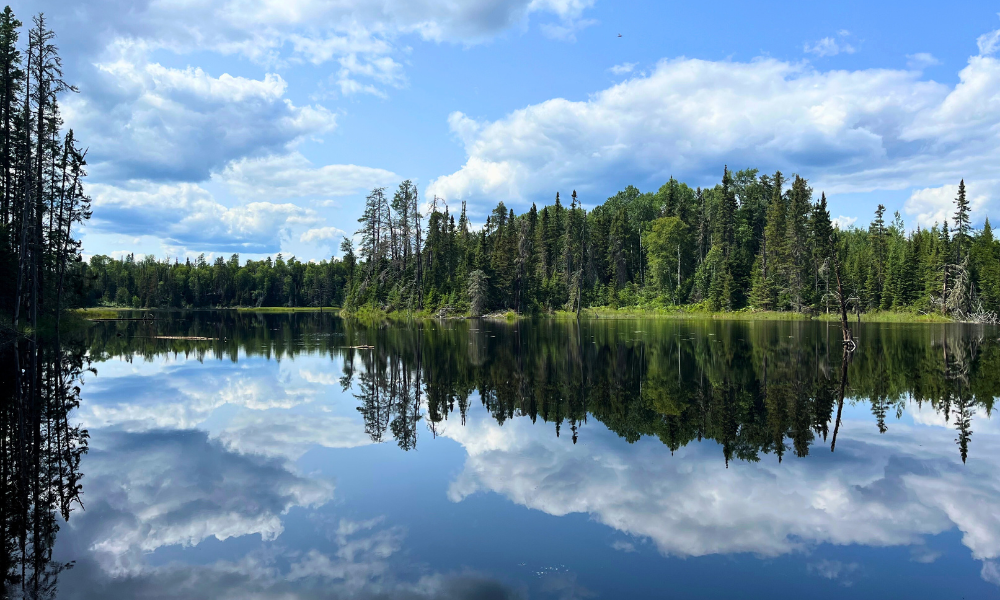 On a partly cloudy but otherwise beautiful day, trees perfectly reflected off the calm water of one of Ontario’s many unnamed lakes, found down a little-used forest road somewhere near Woman River. I was in the area putting up bioacoustic recorders — devices that capture bird calls — to find out which migratory birds make this corner of Canada’s boreal forest their temporary home. — Danielle Greco, forest biologist